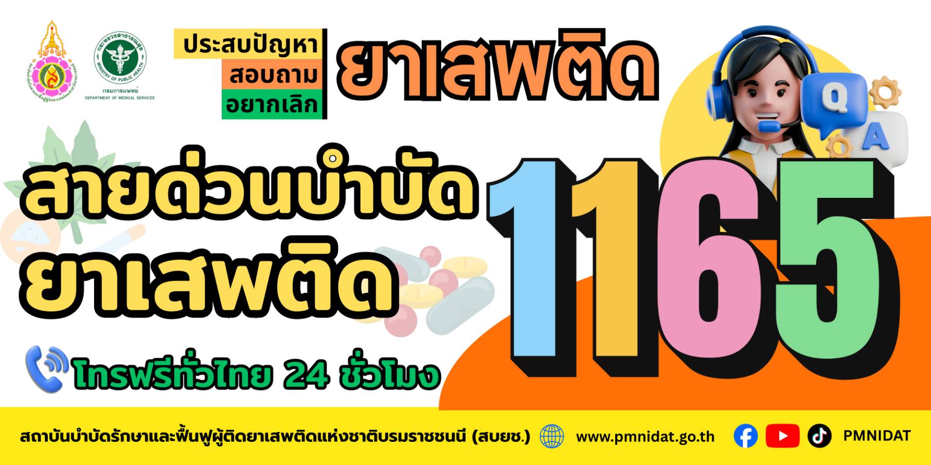 สายด่วนบำบัดยาเสพติด 1165 ที่ปรึกษาปัญหาเรื่องยาเสพติดตลอด 24 ชั่วโมง